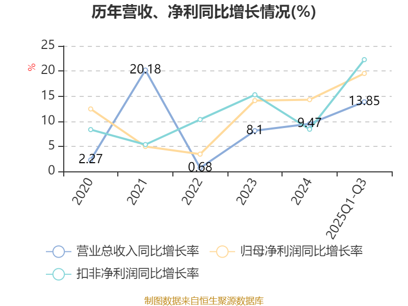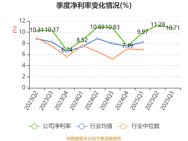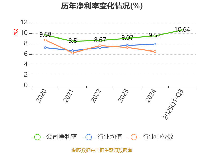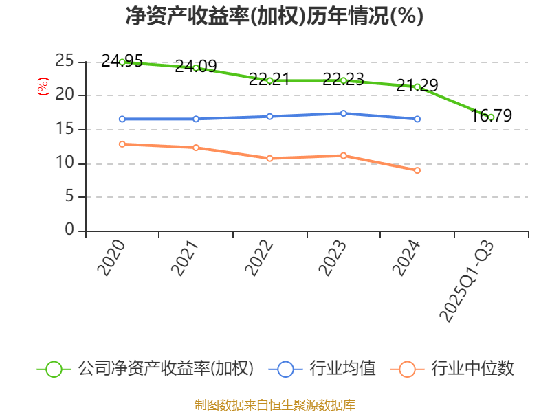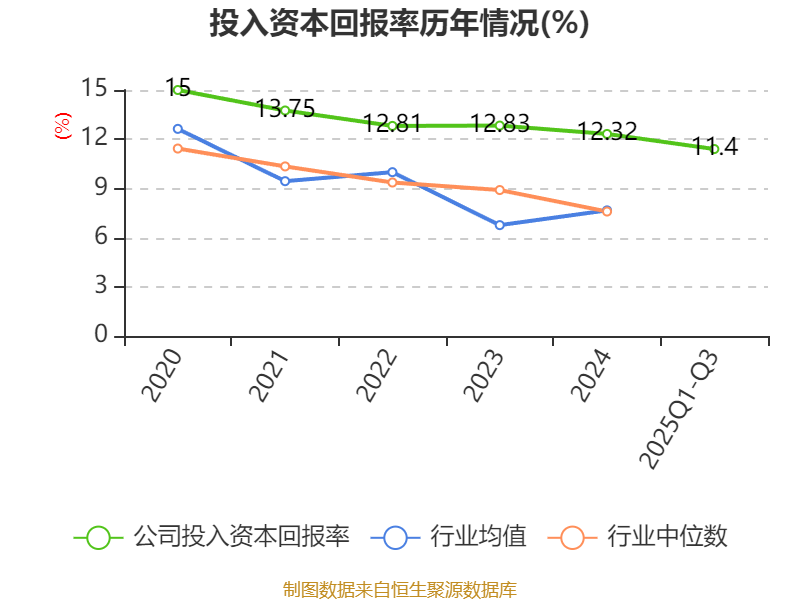 盈利能力方面, 2025年前三季度公司加权平均净资产收益率为16.79%,同比下降1.67个百分点。公司2025年前三季度投入资本回报率为11.4%,较上年同期上升0.94个百分点。