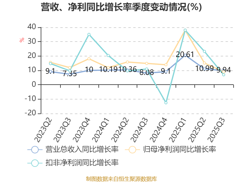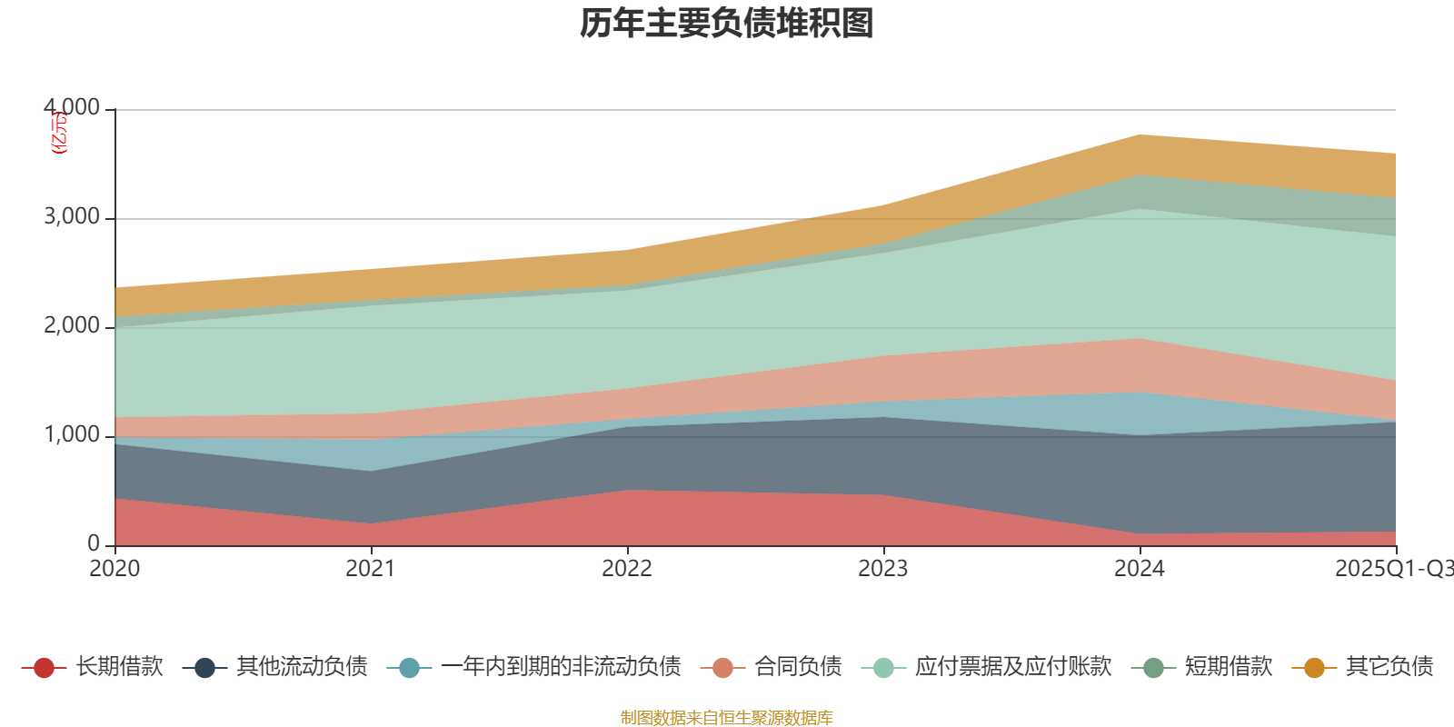 负债重大变化方面,截至2025年三季度末,公司一年内到期的非流动负债较上年末减少95.78%,占公司总资产比重下降6.28个百分点;应付票据及应付账款较上年末增加11.04%,占公司总资产比重上升2.57个百分点;合同负债较上年末减少25.87%,占公司总资产比重下降2个百分点;其他流动负债较上年末增加11.09%,占公司总资产比重上升1.97个百分点。