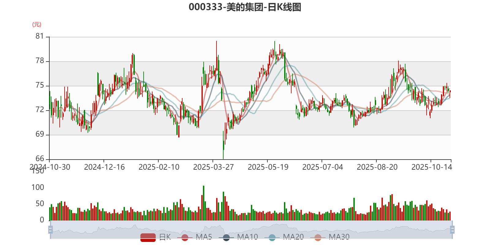三季报显示,2025年三季度末的公司十大流通股东中,持股最多的为美的控股有限公司,占比28.234%。在具体持股比例上,美的控股有限公司、香港中央结算有限公司、HKSCC NOMINEES LIMITED、中国证券金融股份有限公司、中央汇金资产管理有限责任公司、黄健、华泰柏瑞沪深300交易型开放式指数证券投资基金、易方达沪深300交易型开放式指数发起式证券投资基金、栗建伟、华夏沪深300交易型开放式指数证券投资基金持股有所下降。