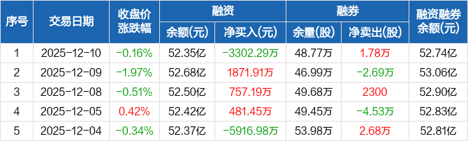 美的集团:融资净偿还3302.29万元,融资余额52.35亿元(12-10)
