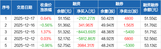 美的集团:融资净偿还2101.27万元,融资余额51.15亿元(12-17)