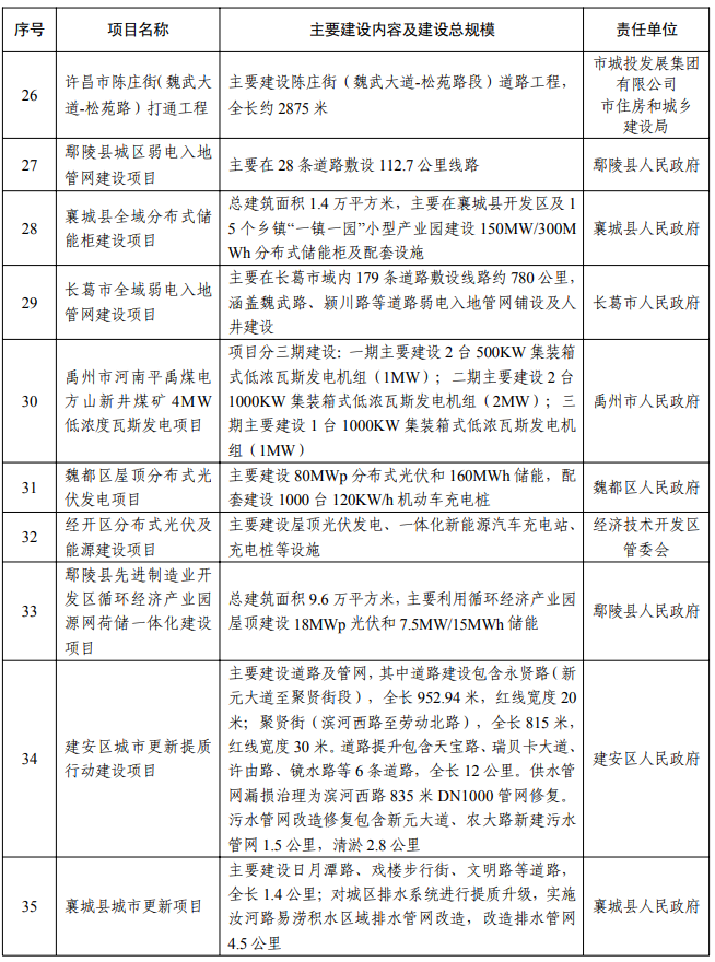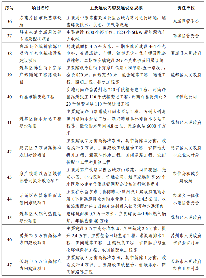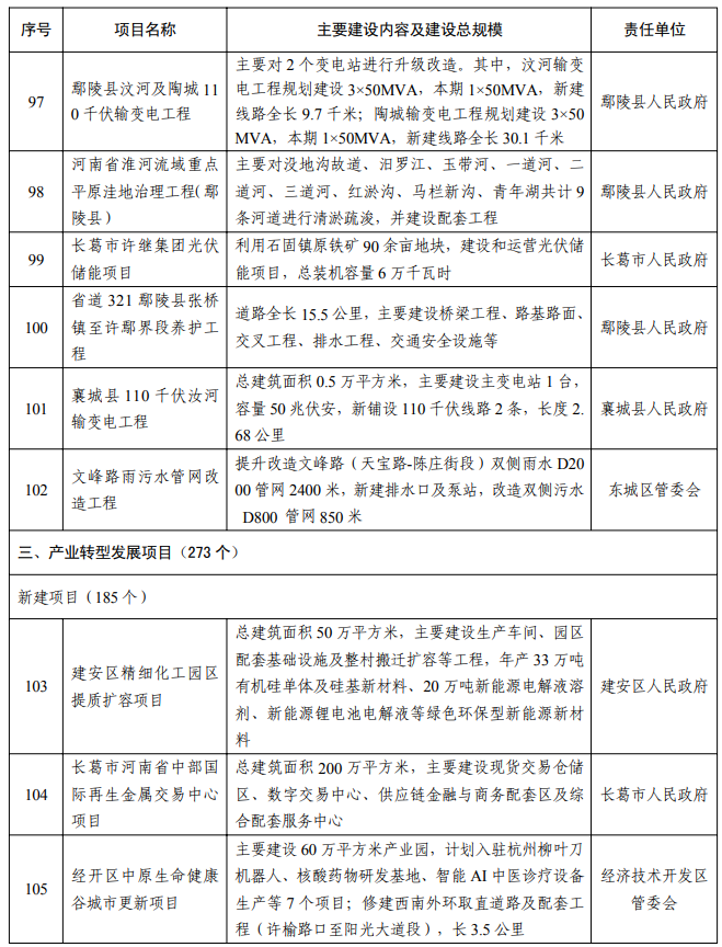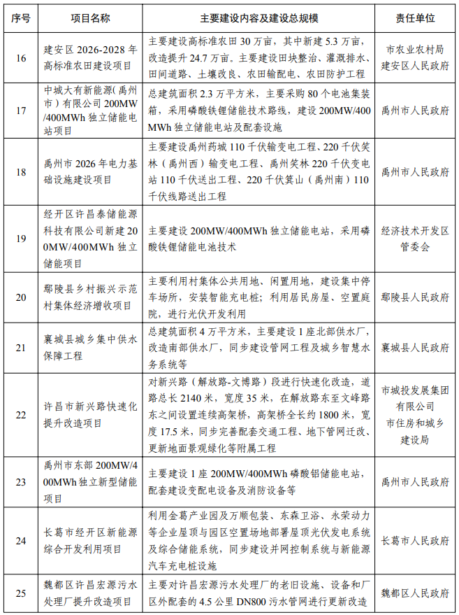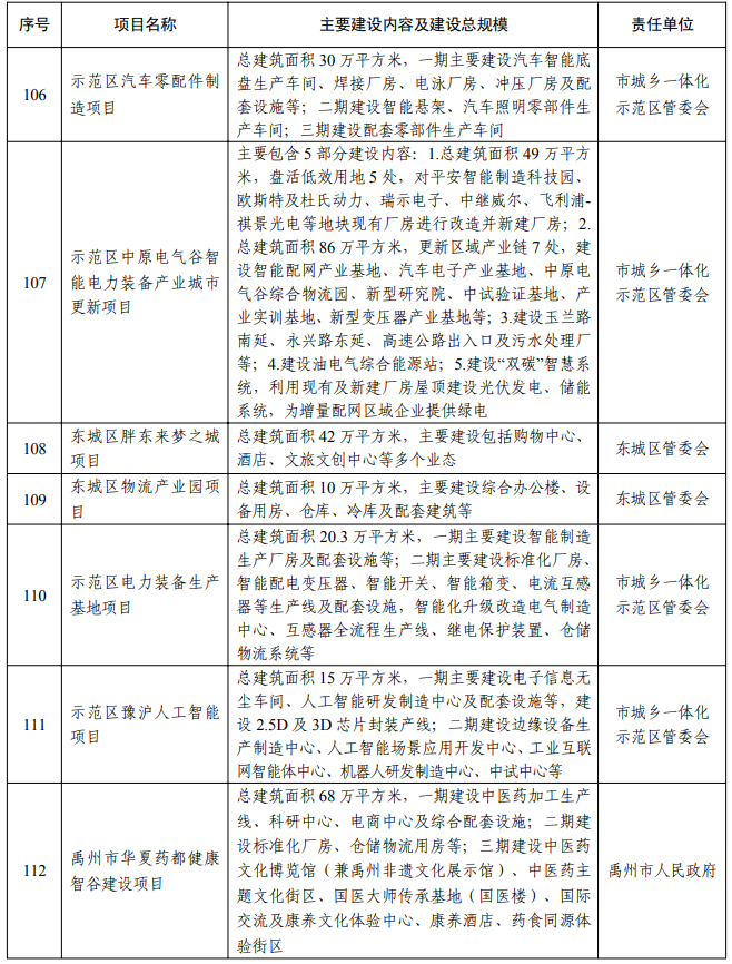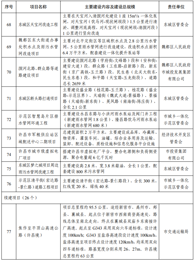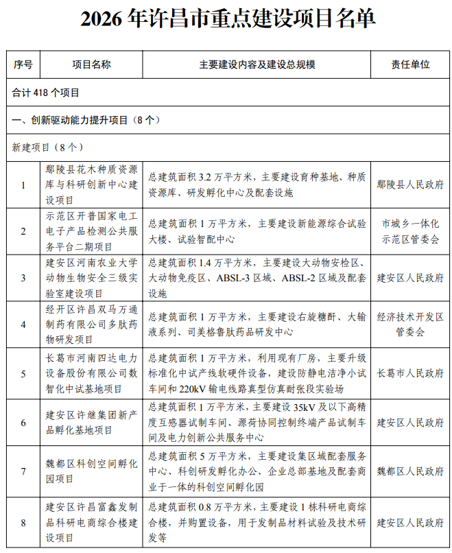 【大河财立方消息】2月5日消息,许昌市人民政府办公室日前印发2026年许昌市重点建设项目名单, 418个项目入选。