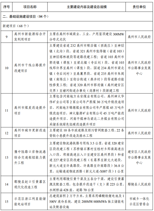 其中,包括8个创新驱动能力提升项目、94个基础设施建设项目、273个产业转型发展项目、19个绿色低碳转型项目,以及24个民生和社会事业改善项目。