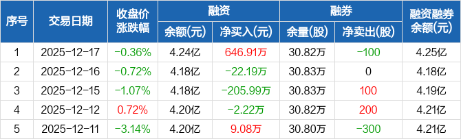 金融街:融资净买入646.91万元,融资余额4.24亿元(12-17)