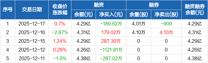 沈阳机床:融资净偿还189.62万元,融资余额4.29亿元(12-17)