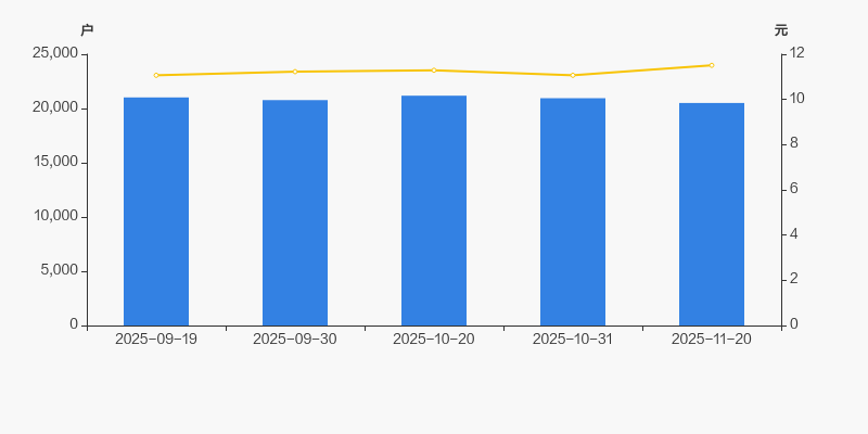 2025年9月19日至今,公司股东户数有所下降,区间跌幅为2.43%。2025年9月19日至2025年11月20日区间股价上涨3.97%。