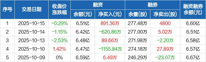 渤海租赁:融资净买入891.36万元,融资余额6.51亿元(10-15)