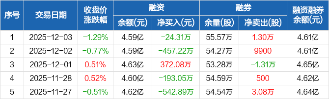 吉林化纤:融资净偿还24.31万元,融资余额4.59亿元(12-03)