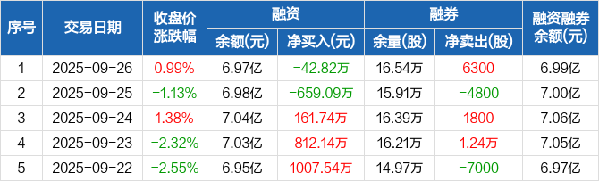 湖北宜化:融资净偿还42.82万元,融资余额6.97亿元(09-26)