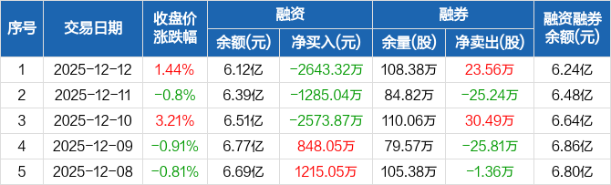徐工机械:连续3日融资净偿还累计6502.23万元(12-12)