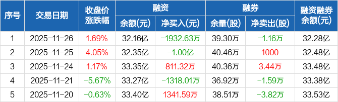 兴业银锡:融资净偿还1932.63万元,融资余额32.16亿元(11-26)