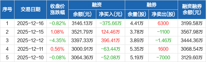 粤高速A:融资净偿还375.66万元,融资余额3146.13万元(12-16)