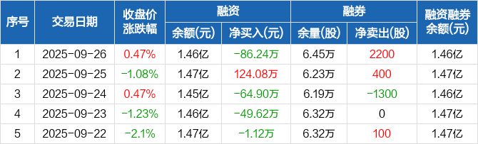 京粮控股:融资净偿还86.24万元,融资余额1.46亿元(09-26)