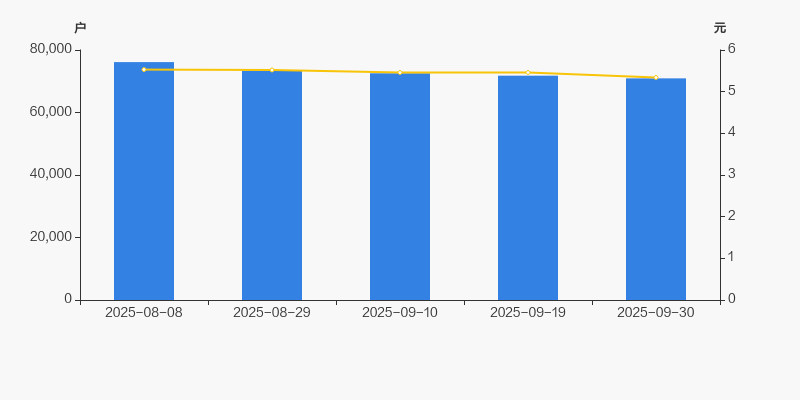 截至2025年9月30日,公司最新总股本为9.2亿股,其中流通股本为9.02亿股。户均持有流通股数量由上期的1.26万股上升至1.27万股,户均流通市值6.79万元。