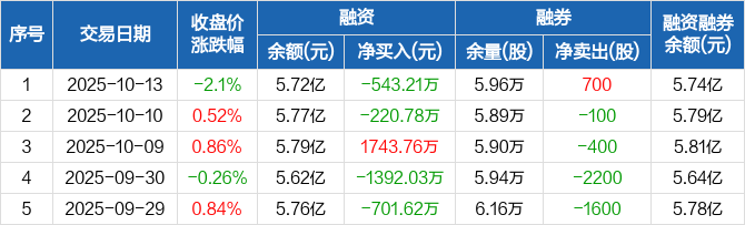 丽珠集团:融资净偿还543.21万元,融资余额5.72亿元(10-13)