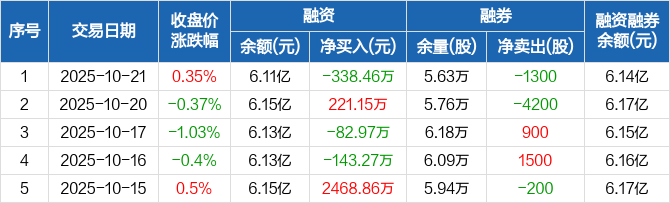 丽珠集团:融资净偿还338.46万元,融资余额6.11亿元(10-21)