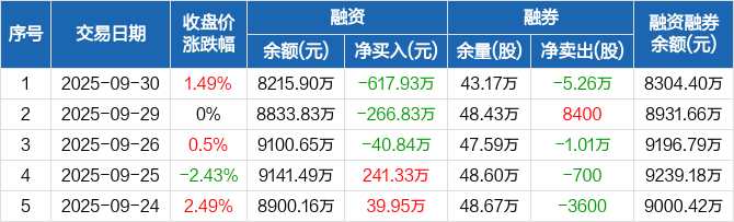 荣安地产:连续3日融资净偿还累计925.59万元(09-30)
