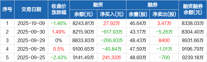 荣安地产:融资净买入27.92万元,融资余额8243.81万元(10-09)