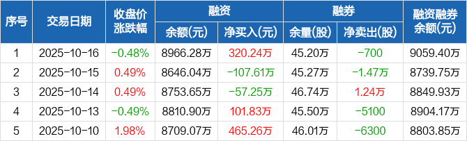 荣安地产:融资净买入320.24万元,融资余额8966.28万元(10-16)