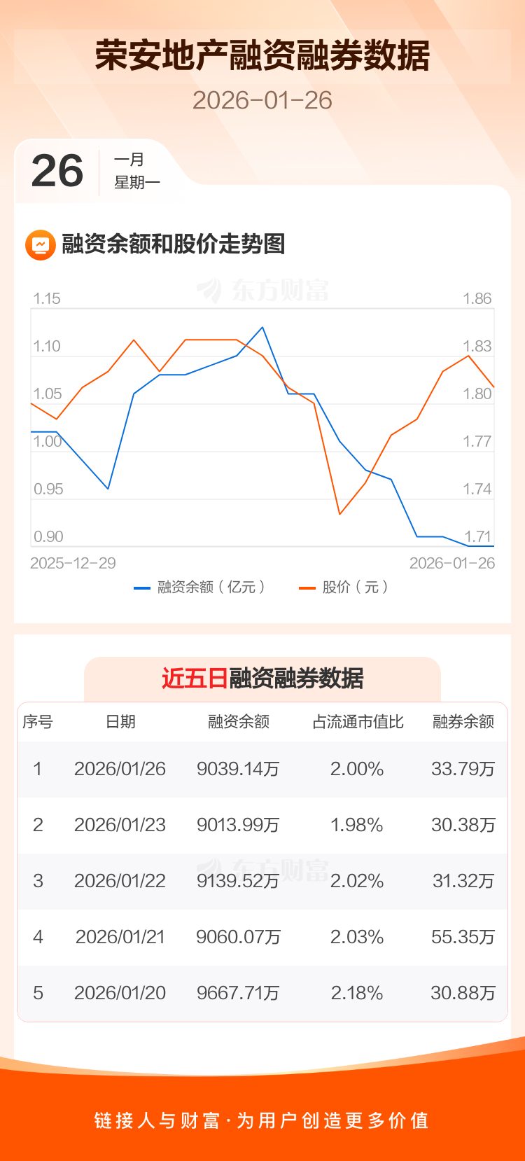 交易所最新数据显示,荣安地产于2026年1月26日获融资买入213.24万元,融资偿还188.08万元,当日融资净买入25.16万元。目前,该股融资余额9039.14万,占流通市值比例为2.00%。