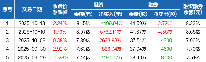 中兵红箭:融资净偿还4199.94万元,融资余额8.15亿元(10-13)