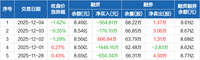 中兵红箭:融资净偿还564.81万元,融资余额8.49亿元(12-04)