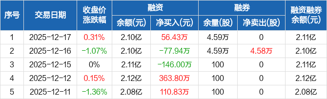 长虹美菱:融资净买入56.43万元,融资余额2.1亿元(12-17)
