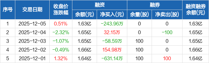 岭南控股:融资净偿还243.96万元,融资余额1.63亿元(12-05)