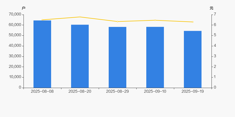 截至2025年9月19日,公司最新A股总股本为8.43亿股,其中流通股本为6亿股。户均持有流通股数量由上期的1.03万股上升至1.1万股,户均流通市值6.95万元。