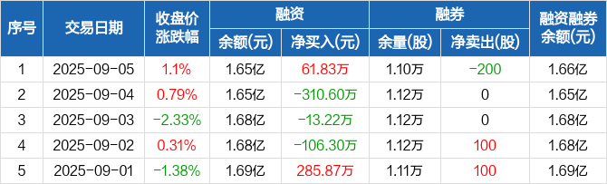 穗恒运A:融资净买入61.83万元,融资余额1.65亿元(09-05)