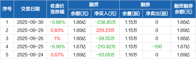 穗恒运A:融资净偿还238.85万元,融资余额1.66亿元(09-30)