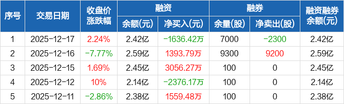 万泽股份:融资净偿还1636.42万元,融资余额2.42亿元(12-17)