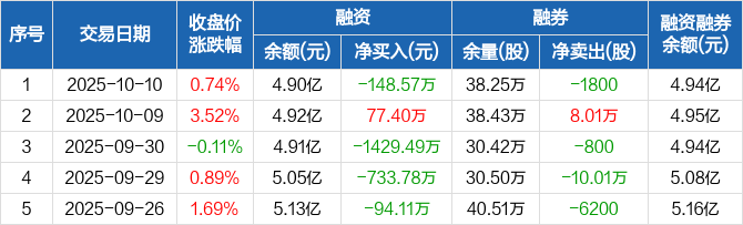 中绿电:融资净偿还148.57万元,融资余额4.9亿元(10-10)