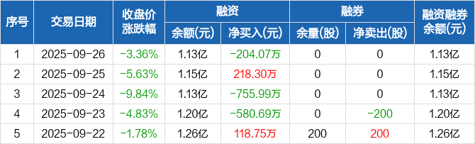 金浦钛业:融资净偿还204.07万元,融资余额1.13亿元(09-26)
