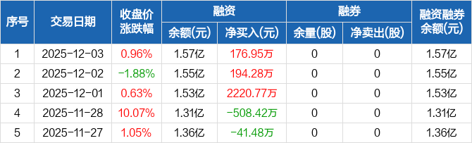 金浦钛业:融资余额1.57亿元,创历史新高(12-03)