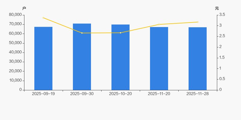 自2025年9月30日以来,公司股东户数连续3期下降,截至目前减幅为5.54%。2025年9月30日至2025年11月28日区间股价上涨19.17%。
