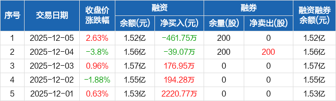 金浦钛业:融资净偿还461.75万元,融资余额1.52亿元(12-05)