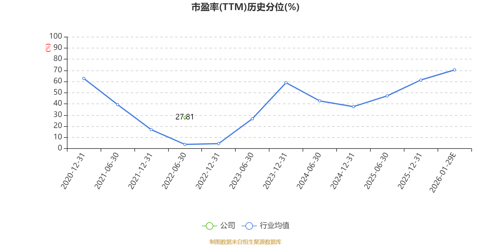 以本次披露业绩预告均值计算,公司近年市盈率(TTM)图如下所示: