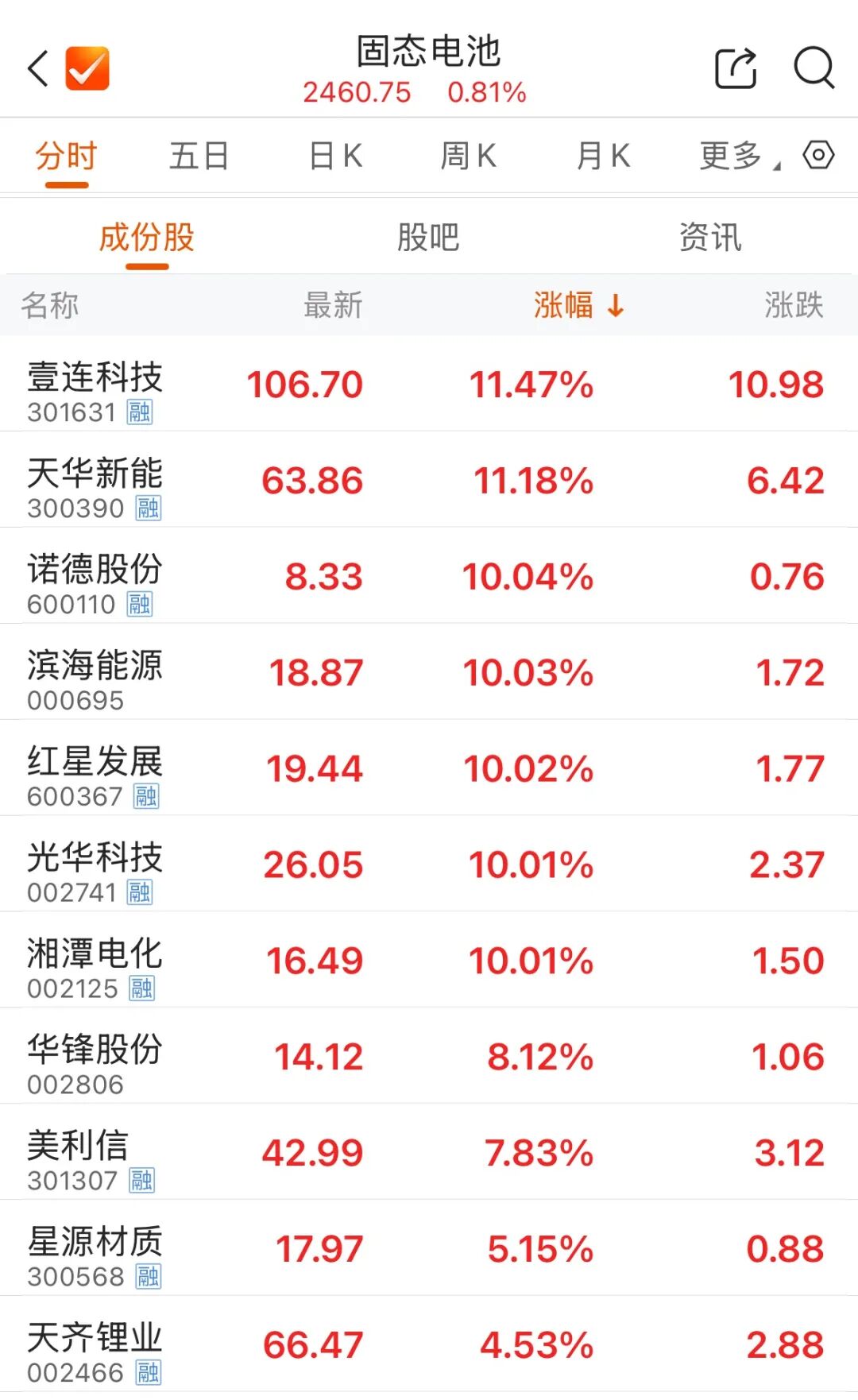 固态电池概念震荡拉升,光华科技、诺德股份、滨海能源等涨停。