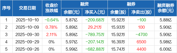 航天发展:融资净偿还209.68万元,融资余额5.87亿元(10-10)