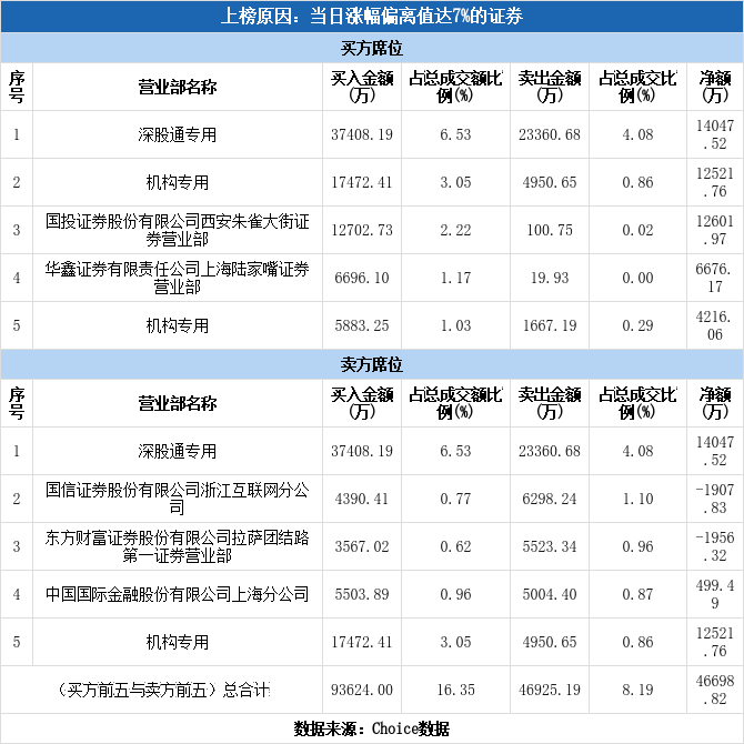 多主力现身龙虎榜,航天发展涨停(12-02)