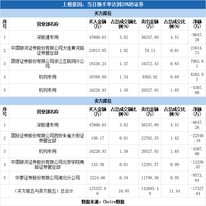 多主力现身龙虎榜,航天发展换手率达46.99%(12-03)
