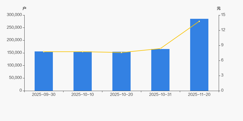 2025年9月30日至今,公司股东户数显著大幅增长,区间涨幅达82.90%。2025年9月30日至2025年11月20日区间股价上涨78.04%。