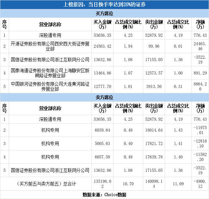 多主力现身龙虎榜,航天发展换手率达43.45%(12-04)