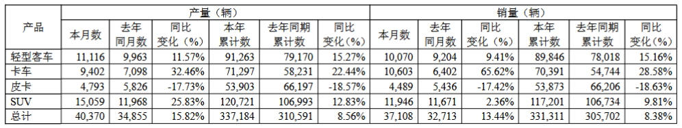 江铃汽车11月实现产、销量同比均增