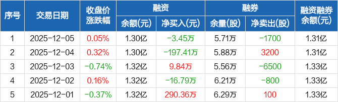 江铃汽车:融资净偿还3.45万元,融资余额1.3亿元(12-05)