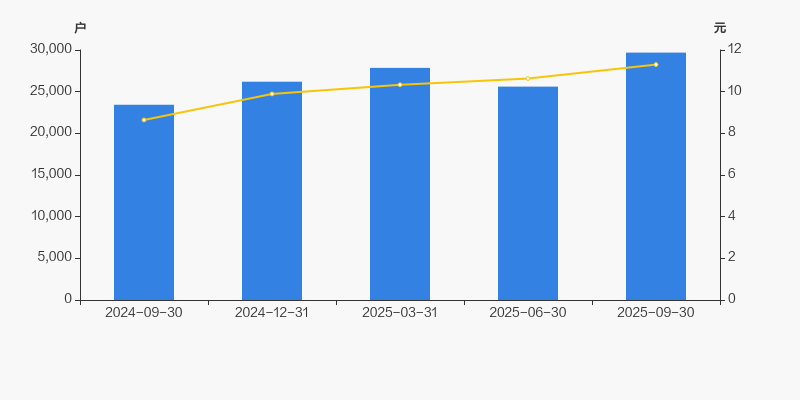 2024年9月30日至今,公司股东户数显著增长,区间涨幅为26.71%。2024年9月30日至2025年9月30日区间股价上涨30.86%。