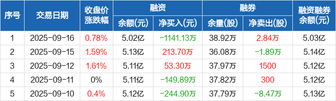甘肃能化:融资净偿还1141.13万元,融资余额5.02亿元(09-16)