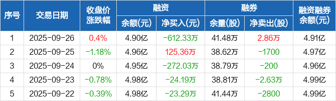 甘肃能化:融资净偿还612.33万元,融资余额4.9亿元(09-26)