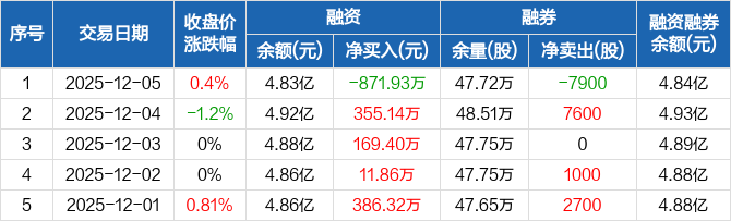 甘肃能化:融资净偿还871.93万元,融资余额4.83亿元(12-05)